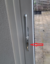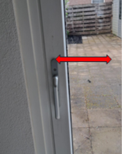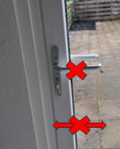 Als de deurkruk in rechte positie staat, dan kunt u de schuifpui NIET openen! Voor het openen van de schuifpui moet u deze deurkruk helemaal naar beneden draaien. |