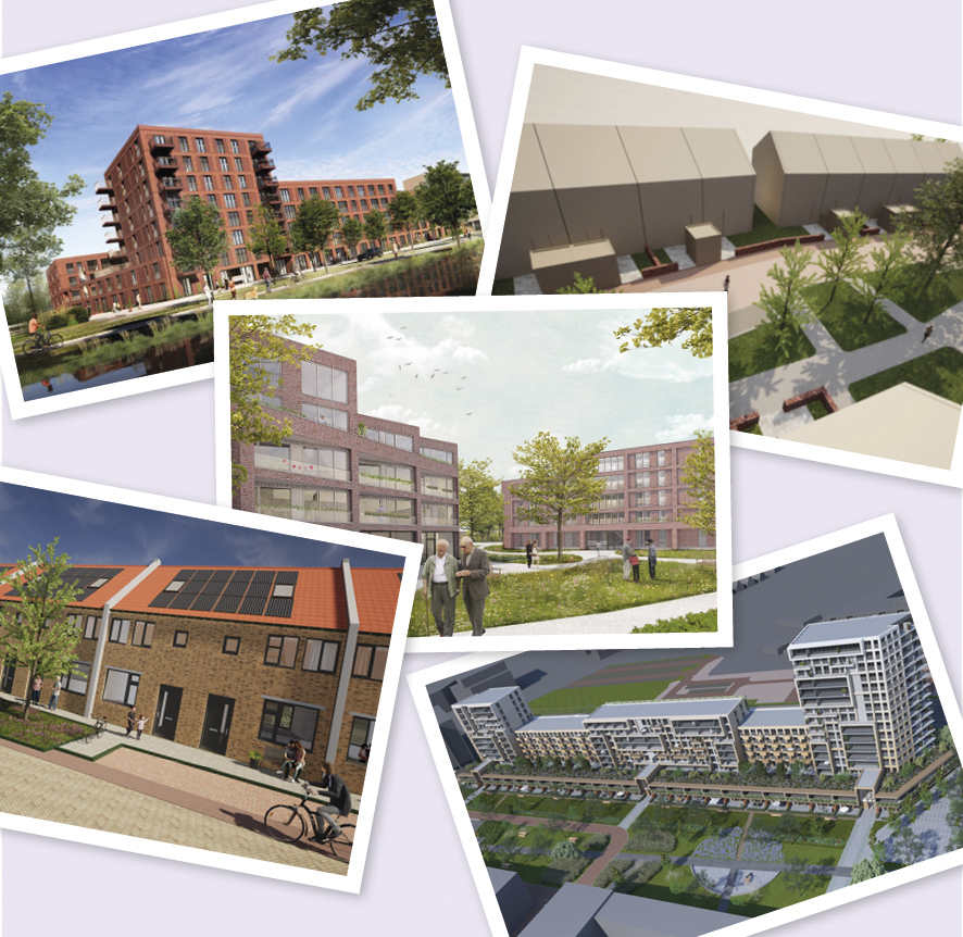 de Klompenmaker, Noorderlicht, Noorderkeerkring en het Rode Dorp fase III in Alphen aan den Rijn en in Boskoop de Mendelweg en Waterrijk West. En er is voor iedereen wat: van gezinnen tot senioren en starters.