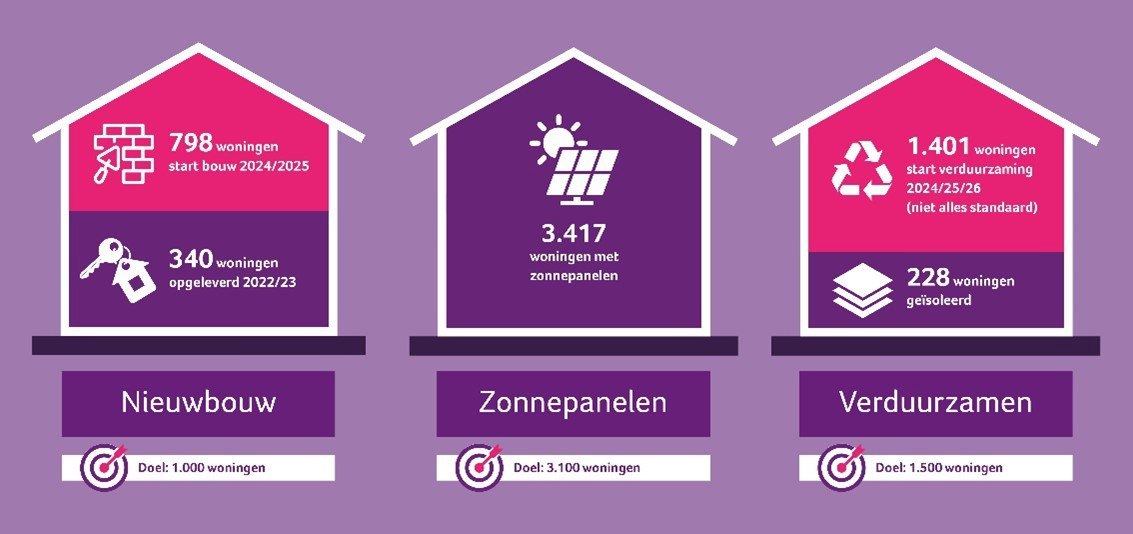 Tijdens de winterborrel gaf Monique Brewster een presentatie waarin ze liet zien dat wij de prestatieafspraken 2022-2026 kunnen waarmaken. Maar onze ambities staan onder druk door rentestijgingen, stijging bouwkosten, hoge VPB-belasting en huurverlagingen. Op de lange termijn hebben we simpelweg niet genoeg financiële middelen om alles te realiseren. U gaf aan dat nieuwbouw de hoogste prioriteit heeft, maar dat duurzaamheid ook belangrijk is. In onze meerjarenbegroting 2025 verwerken wij uw input: investeren in zowel nieuwbouw als verduurzaming, maar met accent op nieuwbouw.