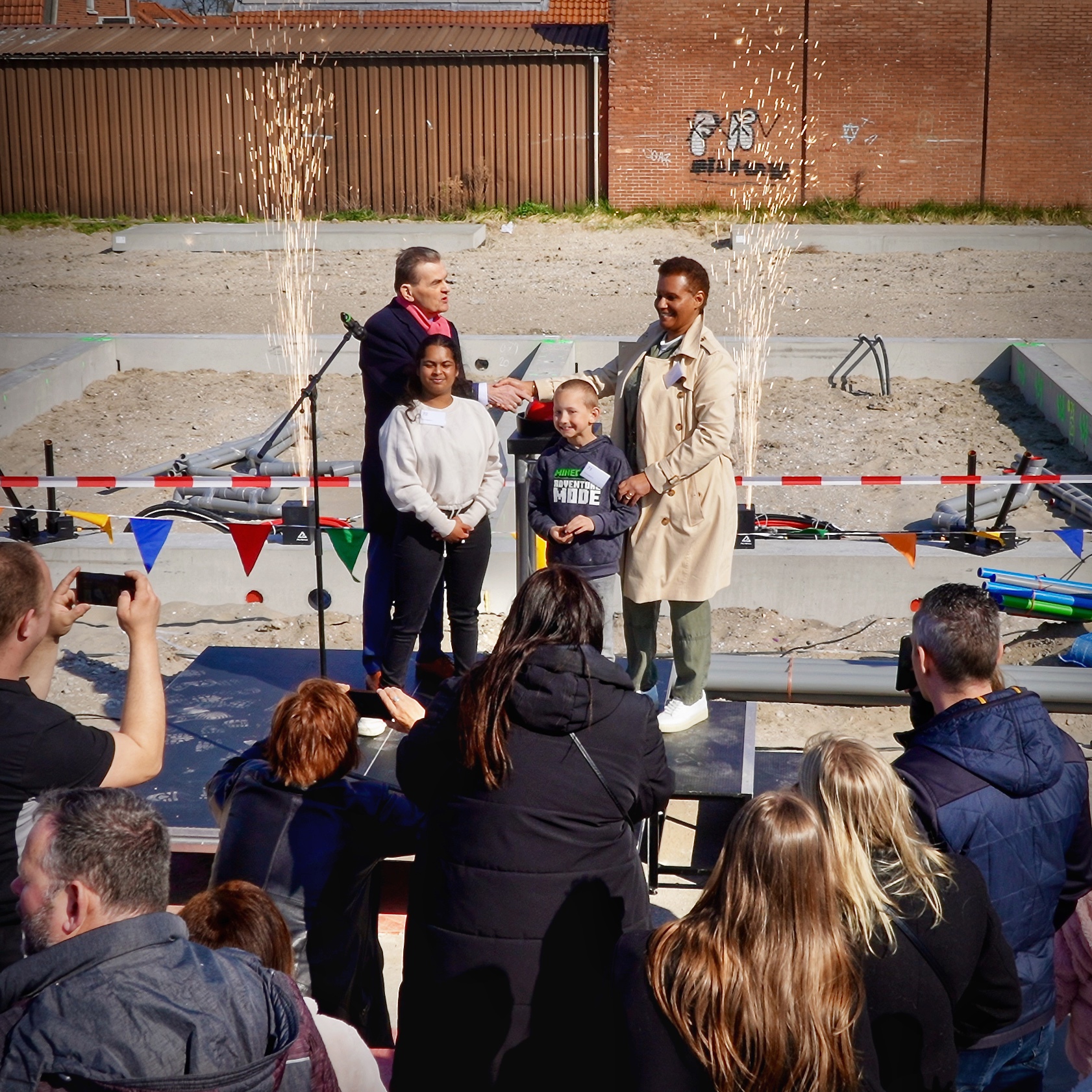 Op woensdag 2 april vierden we de feestelijke bouwstart van het nieuwbouwproject in het Rode Dorp in Alphen aan den Rijn. Met een druk op de knop kondigden wethouder Van As, directeur-bestuurder Monique Brewster en huurders uit de Karel Doormanstraat met een knal de bouw van de woningen aan.