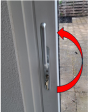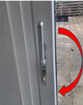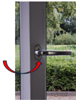 Als de deurkruk in rechte positie staat, dan kunt u de schuifpui NIET openen! Voor het openen van de schuifpui moet u deze deurkruk helemaal naar beneden draaien. |