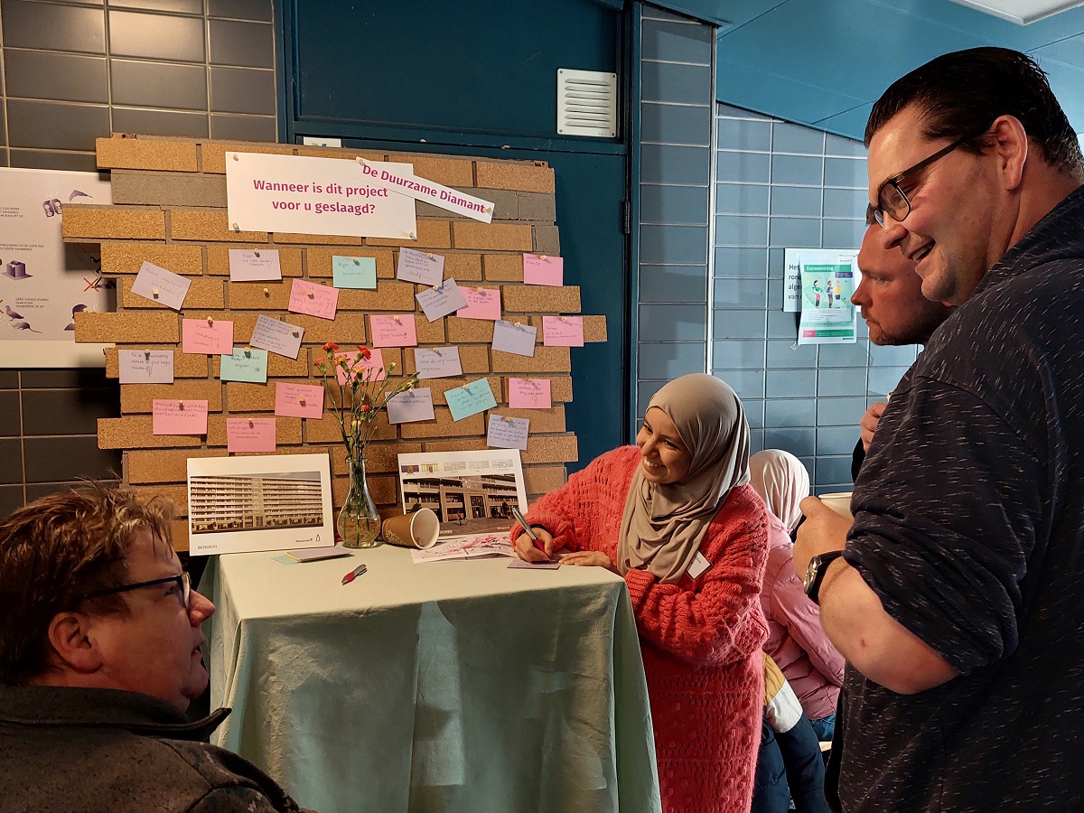 Huurders van de flat de Lange Diamant konden woensdagmiddag 24 april de plannen voor de nieuwe uitstraling van hun flat zien. Woonforte start in 2025 met een grote renovatie van de lange flat aan de Diamantstraat nrs. 156 - 490. Hier gaat de corporatie 166 appartementen verduurzamen tot aan de Standaard. Daarnaast krijgt de flat een enorme facelift waarmee deze klaar is voor een duurzame toekomst.